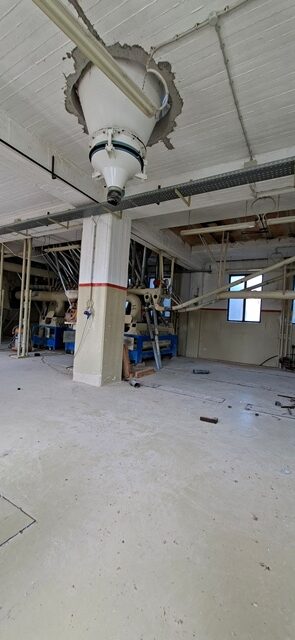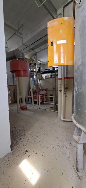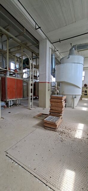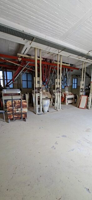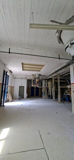 Βιοτεχνικό κτίριο συνολικής επιφάνειας 918 τ.μ. , με 4 ορόφους από 306 τ.μ. ο κάθε όροφος. Υπάρχει υπόγειο, ισόγειο, Α’ όροφος και Β’ όροφος. Ο κάθε όροφος έχει ύψος 4 μέτρα εσωτερικά του κτιρίου. Διαθέτει γεφυροπλάστιγα.  Ρεύμα: μέση τάση βιομηχανικό. Το βιοτεχνικό κτίριο βρίσκεται σε οικόπεδο 5.990,59 τ.μ. και βρίσκεται πλησίον του νέου νομαρχιακού δρόμου Χαλκίδας-Ψαχνών και εκτός ορίων του οικισμού Βατώντα, εκτός περιμετρικής ζώνης οικισμού, εκτός Ζώνης Οικιστικού Ελέγχου (Ζ.Ο.Ε.). Η κατασκευή όλου του κτιρίου είναι από μπετό. Εκτός από την τριώροφη οικοδομή βιομηχανικής χρήσης (Αλευρόμυλος), μέσα στο αγροτεμάχιο υπάρχουν και 3 μεταλλικές κυλινδρικές δεξαμενές αποθήκευσης (silos) και πηγάδι βάθους 18 μέτρων. Κατάλληλο για εργοστάσιο ζωοτροφών.