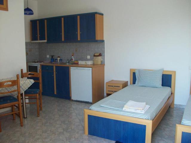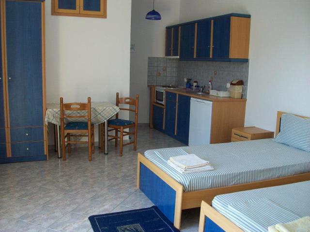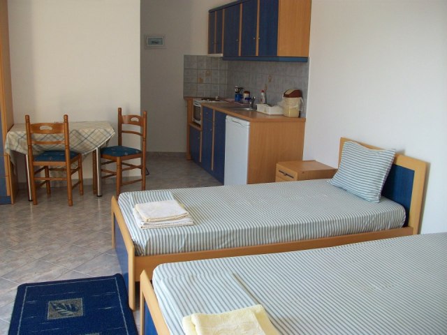 Οι γκαρσονιέρες και το 2άρι είναι πλήρως επιπλωμένα και με ηλεκτρικές συσκευές. Διαθέτουν δάπεδο πλακάκι, παράθυρα αλουμινίου, σίτες, ηλεκτρικό θερμοσόφωνα κάθε κτίριο και για θέρμανση- ψύξη υπάρχει A/C.