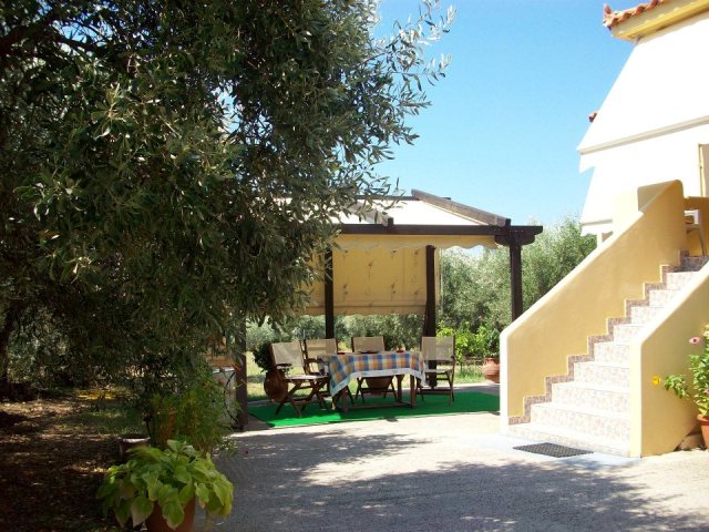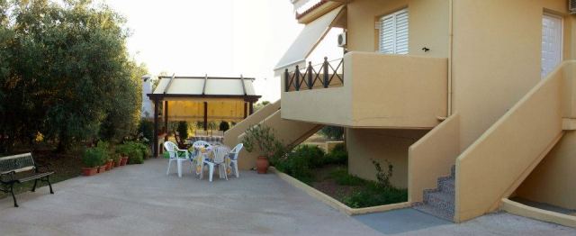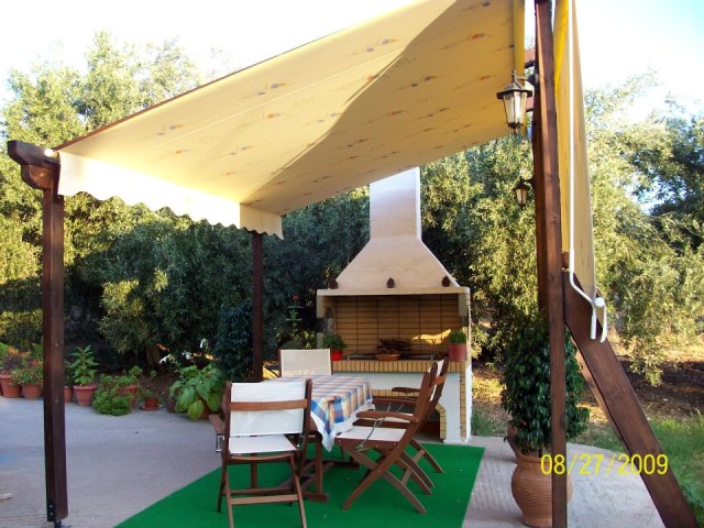 Στο οικόπεδο ξεχωρίζει η μεγάλη αυλή με έναν υπέροχο κήπο με γκαζόν, καλλωπιστικά φυτά, καρποφόρα δέντρα, BBQ και κιόσκι με σετ τραπεζαρίας εξωτερικού χώρου, προσφέροντας άνεση και ιδιωτικότητα. Ο εξωτερικός χώρος διαθέτει πλούσιο πράσινο, ιδανικό για χαλάρωση και διαμόρφωση επιπλέον παροχών. Υπάρχει άπλετος χώρος για δραστηριότητες, φιλοξενία επισκεπτών και δημιουργία ενός ολοκληρωμένου εξοχικού περιβάλλοντος. Μέσα στο οικόπεδο υπάρχουν 10 ρίζες ελιές, πορτοκαλιές και ένα αγροτικό πηγάδι. Το οικόπεδο είναι περιφραγμένο με περίφραξη συρματοπλέγματος και είσοδος με γκαραζόπορτα συρόμενη με τηλεκοντρόλ.